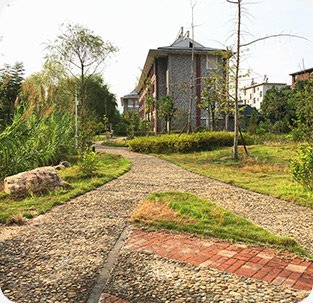 踏入養(yǎng)護(hù)院大門,東南部獨(dú)特的風(fēng)情撲面而來(lái),紅磚青瓦,各類綠植競(jìng)相生長(zhǎng);院內(nèi)小橋流水,水上肥鵝肆意,優(yōu)哉游哉,一副渾然天成的養(yǎng)老景象。