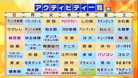 該智能養(yǎng)老社區(qū)可以說是迎合了以上所有需求,在日本誕生的第一個活力老年社區(qū)。社區(qū)占地遼闊,共有六棟住宅樓,以及俱樂部、運動場等設(shè)施。目前共有700多人在這里生活。入住該社區(qū)有幾個條件——50歲以上,身體健康,日常生活能夠自理。俱樂部可謂該社區(qū)大的亮點。除了各種體育健身設(shè)施以外,俱樂部每天都舉辦各種各樣興趣愛好的課程和活動:唱歌、吟詩、樂器演奏、交際舞、棋類、麻將、陶藝、插花、手工做蕎麥面……林林總總五十多種,喜歡什么玩兒什么。
