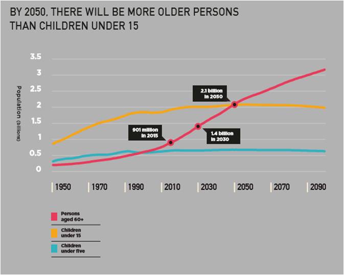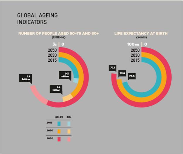 老齡化是全球每個(gè)國家正在面臨或即將面臨的問題。2015年9月,國際助老會發(fā)布了《2015全球老齡事業(yè)觀察指數(shù)》報(bào)告,報(bào)告指出:全球60歲及以上人口約9.01億,占世界人口12.3%。到2030年,這一比例將達(dá)到16.5%。