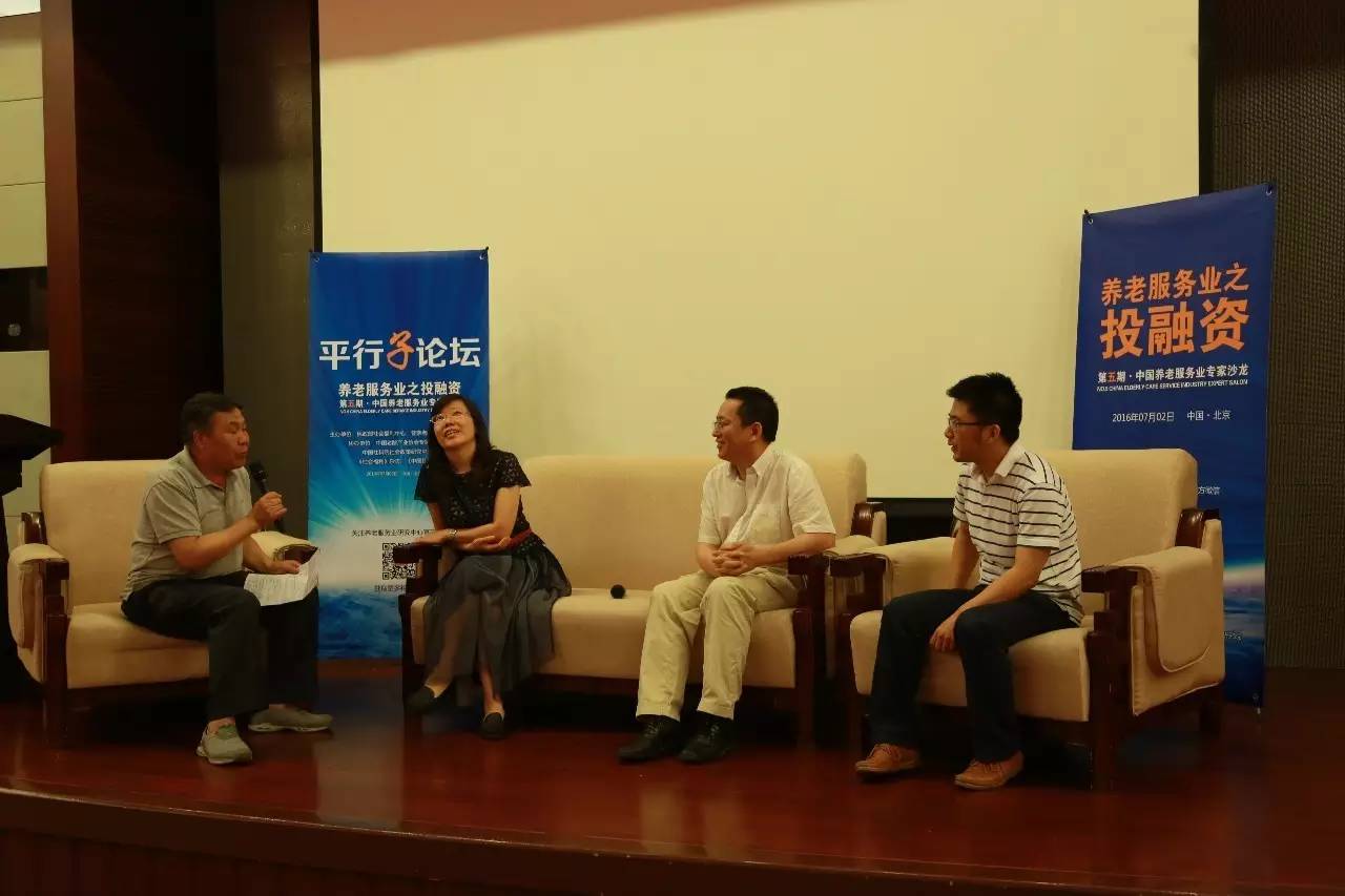 特邀嘉賓:陳付華【湖南健康養老產業投資基金總經理】、唐文湘【普親集團董事長、普親老齡產業發展研究院院長】、張華林【信達風投資公司的副總經理】(順序由左至右)