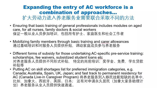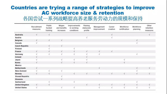 各國嘗試一系列戰略提高養老服務勞動力的規模和保持。