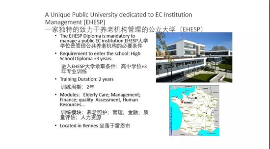 我們在討論培訓政策或者整個護理員隊伍培養時,要把它放到整個養老體系中去考慮,放在整個社會經濟的體系來考慮,這樣才有可能找到問題的答案。培訓工作不是簡單的去做培訓而已,而是要把培訓和經濟體系、社會體系有效銜接才是最重要的。法國有致力于養老服務和管理專業培訓的大學、機構,做的非常專業。