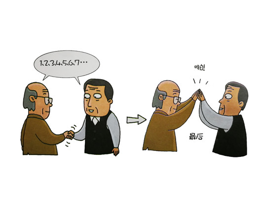 ④4次、2次、1次,這樣逐漸減少次數(shù),最后兩人互相擊掌。