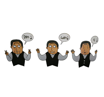 ①跟隨著臺詞的數(shù)字?jǐn)[動手指。