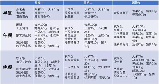 食材種類和重量均不低于《中國居民膳食平衡寶塔》的要求。以上食譜僅作參考,根據每個機構的實際情況和飲食習慣,具體菜色有所差異。