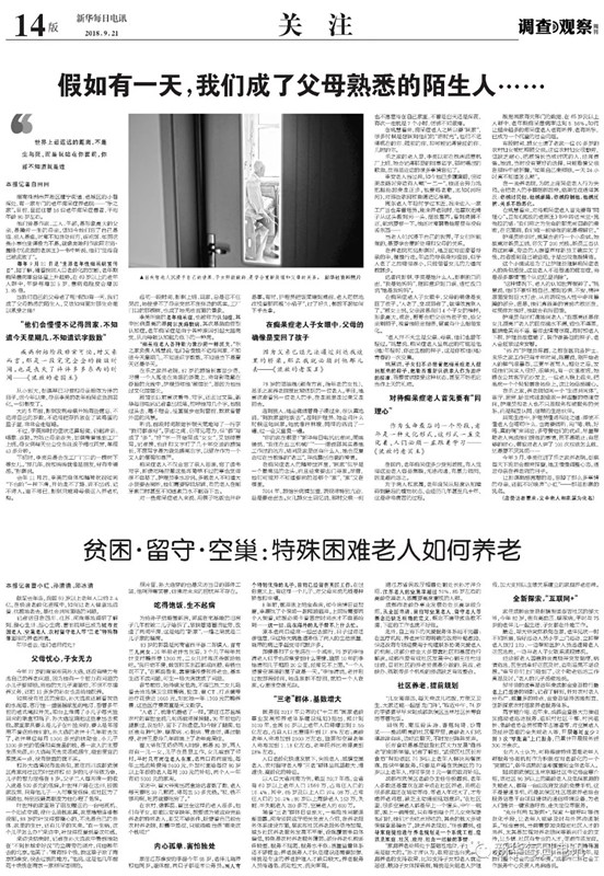 根據國家有關部門的數據,在65歲及以上人群中,老年期癡呆患病率達到5.56%。如何讓越來越多的癡呆癥老人老有所養、老有所樂,已成為一個沉重的社會問題。