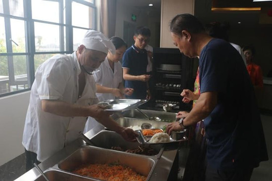 揭牌結(jié)束后,陳太井處長(zhǎng)一行還來(lái)到長(zhǎng)者飯?zhí)貌蛷d現(xiàn)場(chǎng)查看了用餐環(huán)境及飯?zhí)蔑埐恕?jù)介紹,長(zhǎng)者飯?zhí)玫呐洳头⻊?wù)采用預(yù)付費(fèi)管理運(yùn)作模式,長(zhǎng)者辦理會(huì)員卡后,在一周內(nèi)可以任意選擇在哪天用餐,并可享受政府每餐的補(bǔ)貼。