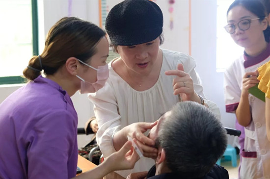 6月2日,在普親董事長唐文湘的陪同下,趙月紅女士先后參觀了普親先鋒社區老年養護中心、普親老年養護院,詳細地了解了機構的服務流程、老年人能力評估、服務質量管理等情況,并與機構的站院長、醫生、護士及入住的長者進行了深入的交流,并在服務現場對認知癥老人的照護進行了專業指導,對護理員們拋出的照護難點答疑解惑。