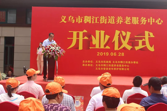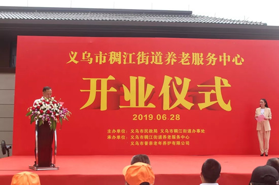 義烏市政府副市長朱有清宣布普親稠江老年養(yǎng)護中心正式開業(yè)。