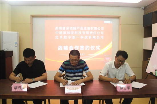 2019年7月17日,普親與中通服創發科技有限責任公司、北京數字加一科技有限公司在長沙簽署戰略合作協議,三方將在智慧養老領域開展深入合作,共同探索智慧養老技術發展路徑與商業模式。