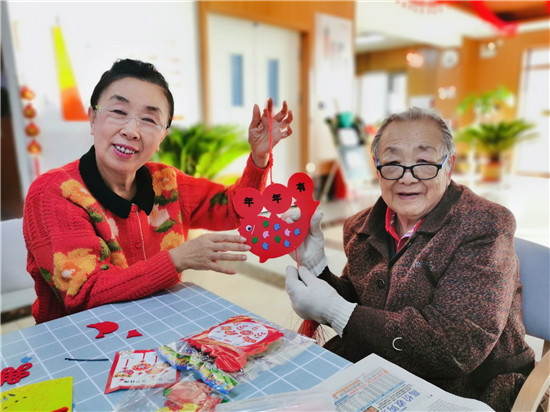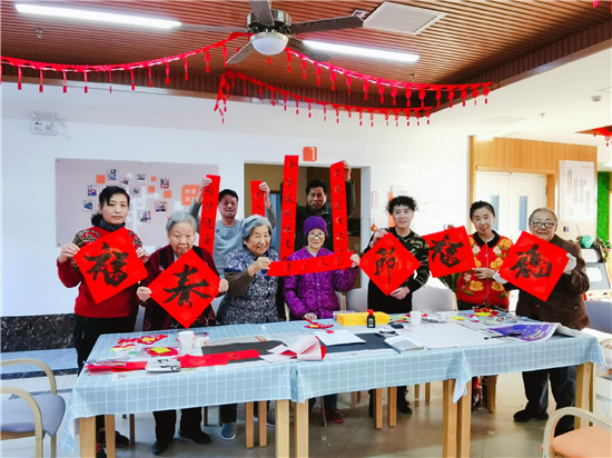 迎新年,光看節目表演可不夠,咱們長者也要齊上場。這不,現場寫下的大紅對聯和喜字上了墻,過節的氣氛就有了,看這桌邊揮毫潑墨的可是來自長辛店街道的書法大家,長者也跟著教學課程,一起動手做了不少春節小掛飾,用掛飾妝點我們的機構,自己動手更有年味!