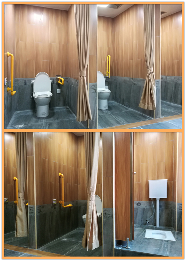 盥洗室內開啟智能生活,所有的坐便器都是智能的,落座感應,座圈溫度可調節,適合不同季節不同氣溫的環境使用,冬季不再寒冷,夏季可自行關閉。同時可進行臀部清洗,貼心關懷長者。