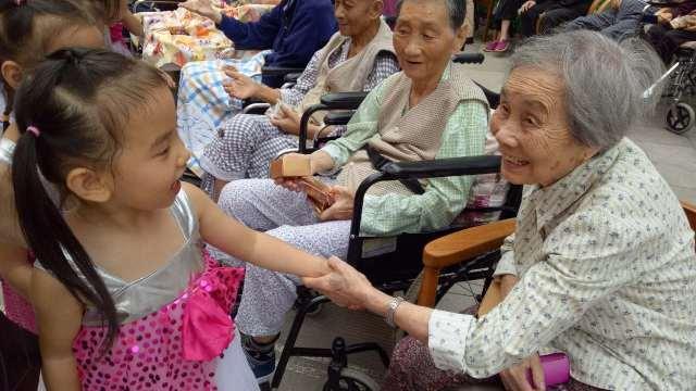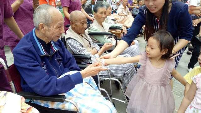 最后的幼兒贈(zèng)餅互動(dòng),將老人與小孩近距離地聯(lián)系在了一起,共同感受過(guò)節(jié)的溫馨氣氛。