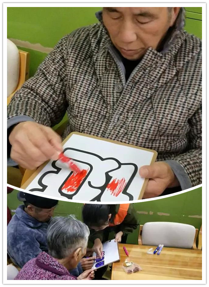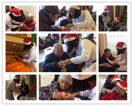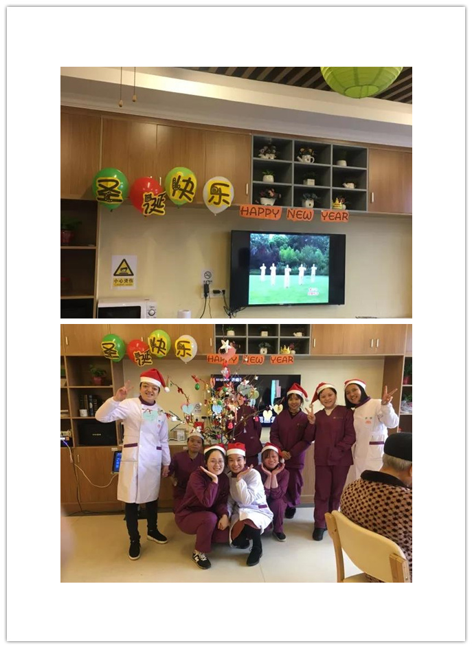 得益于年輕志愿者們的積極參與,普親先鋒機構的老人們過了一個朝氣蓬勃的圣誕節。一大早,志愿者們就來到機構打掃衛生、布置裝飾,讓機構一下便有了節日的氛圍;護理員為爺爺奶奶們戴上了小紅帽,送上了象征著平安的果子,帶著長輩們一起玩圣誕涂鴉,不亦樂乎。