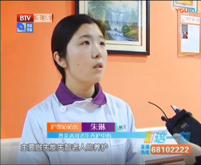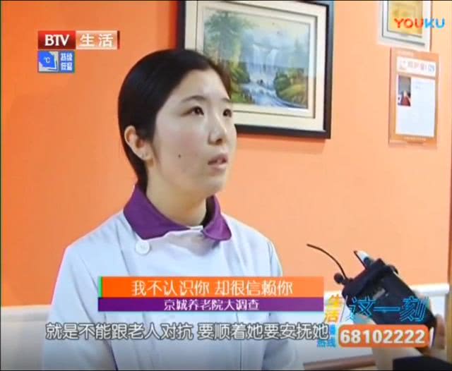 朱琳(普親清河老年養護中心站長):在老人不配合的情況下,我們會對她進行安撫,把她推到旁邊單獨呆一會,情緒就會好很多,千萬不能跟老人對抗,要順著她安撫她。