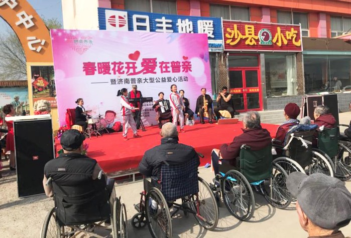 3月31日,由濟南普親金悅老年養護中心主辦,濟南婦兒醫院、濟南愛爾眼科醫院承辦的《春暖花開、愛在普親》公益活動在濟南市大橋鎮舉行。來自濟南五柳島愛心藝術團、鄭集鄉劇團、鵲山小學志愿團的演員們為普親養護中心的老人和當地市民奉獻了一臺精彩演出。據悉,愛爾眼科、濟南婦兒醫院的專家還為現場的老人和市民進行了免費健康咨詢和視力檢查。