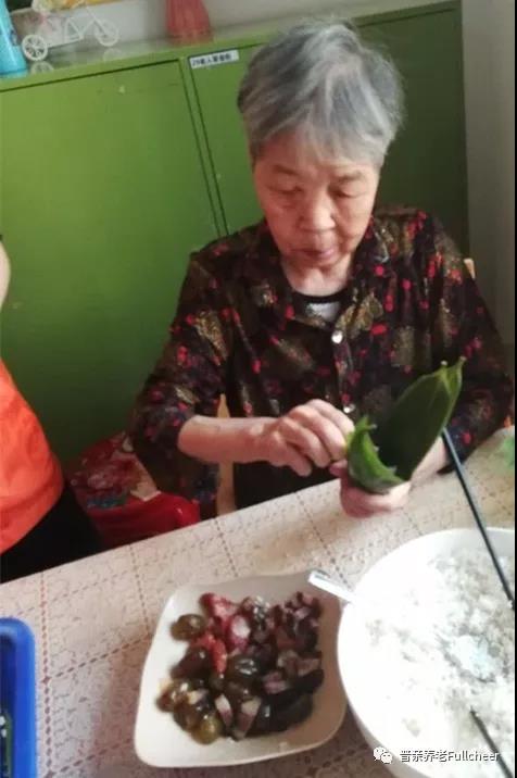 端午節怎么少得了包粽子呢?機構的工作人員特地準備了粽葉、糯米、五花肉,讓爺爺奶奶們自己動手包粽子。不過粽子雖然好吃但不易消化,爺爺奶奶們不能多吃哦。吃飽喝足之后,我們的老年運動會就要開始啦!