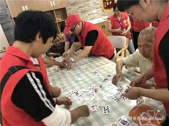 爺爺奶奶上了年紀,眼神有些不好,愛心志愿者就負責給老人們認牌。哎喲,小姑娘,我手里拿的是紅桃6還是紅桃9啊?