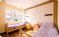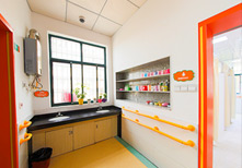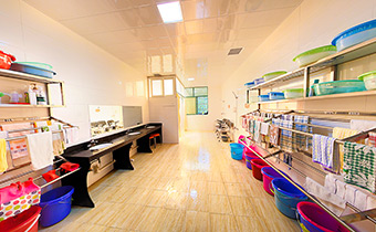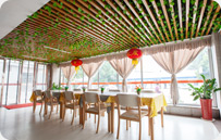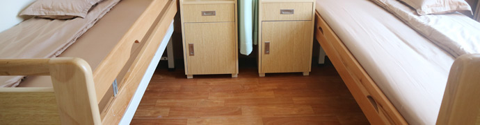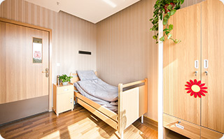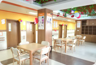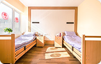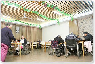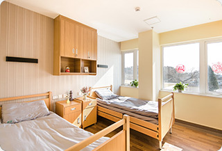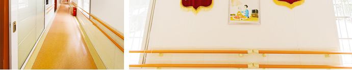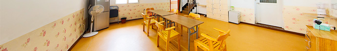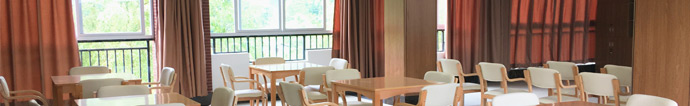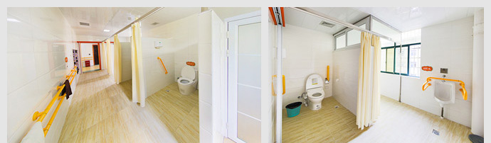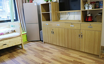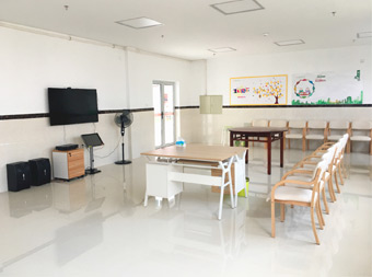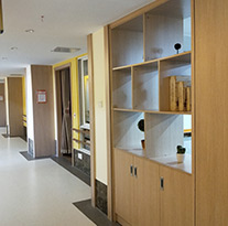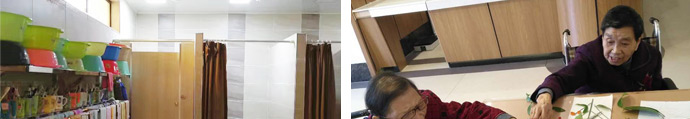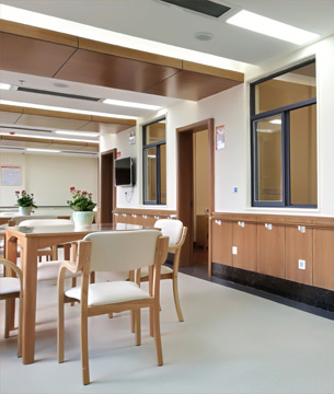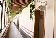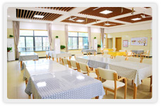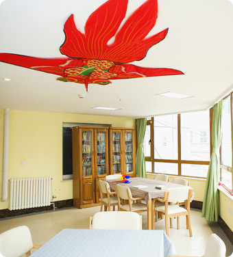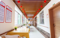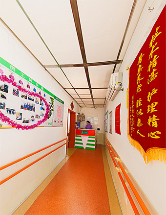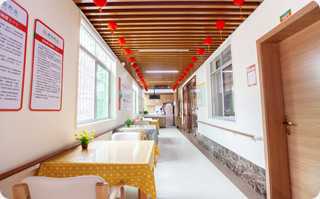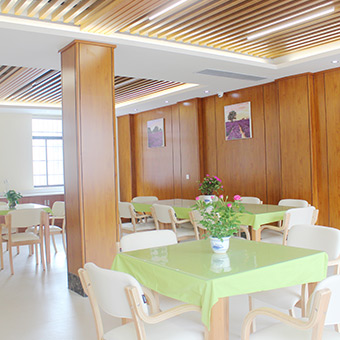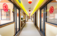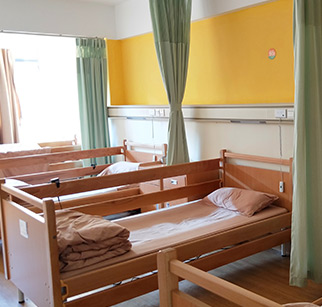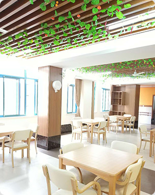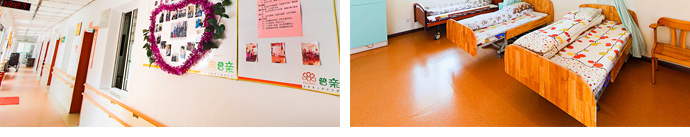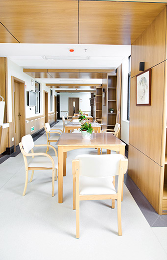 院內裝修布局按照失能、失智老人不同標準合理安排,考慮護理操作的方便性和低風險性,同時兼顧隱私和互不干擾的原則,一樓設為失能老人生活區,內設康復室、護士站、臨終關懷室及老人用餐區。二樓設為失智老人生活區,內設護士站、用餐室。院區內還設有公共洗衣房、廚房、倉庫以及后勤行政辦公室。