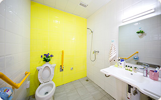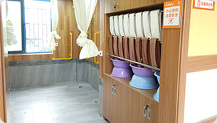 養護中心的改造以普親養老機構3.0版本為標準,布局有起居室、活動室、康復診療室、心理咨詢室、洗浴間、洗漱間以及衛生間等功能性空間,室內各項配套設施嚴格遵循無障礙設計理念,充分考慮到失能失智及高齡老年人生理特征,注重干濕分區,甄選環保材料,配置智能化護理床、智能恒溫沖洗馬桶、一鍵呼叫系統、全天候中央熱水系統等人性化的設施設備,還配置了24小時安全監控系統、電梯門禁安全系統等,為入住長者提供舒適、安全的生活環境。