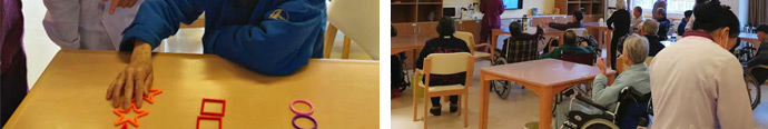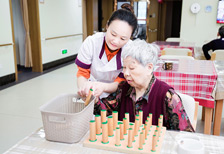 普親龍溪老年養護中心采用分級分區護理制度,將失智區與失能區進行嚴格地劃分。失智區活動空間設計成洄游式格局,以滿足失智老人對“小空間”的需求,有效緩解老人的焦慮感;失能區則更注重空間的大、透、亮,能夠讓老人們在溫馨有愛的環境里開展拼圖、插花、繪畫等個性化的康復訓練。