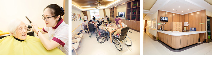 - 在內部布局上,養護中心設有起居室、活動室、康復室、養護站、盥洗室等功能分區,無障礙通道、二十四小時實時監控、電梯門禁系統、緊急呼叫系統等設施也一應俱全,再加上由專業的醫生護士、經驗豐富的護理人員、頗懂浙菜烹飪的廚師及精通康復理療的康復師所組成的照護團隊,能夠有效保證龍溪當地及周邊縣市的失能失智老人享受到專業全面的長期照護服務,提升晚年生活質量。