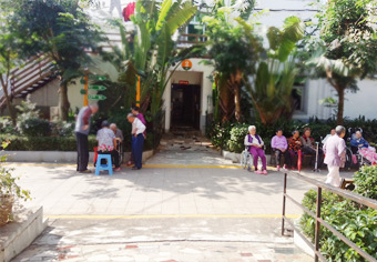 養護中心地處環境清靜的老城區,交通便利,周邊有湘潭市第五人民醫院、先鋒衛生所。養護中心有獨立的院落,院內樟樹枝葉繁茂,蔥郁滴翠,環境舒適怡人。