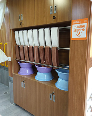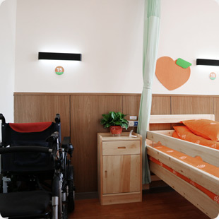 南昌市普親朝農老年養護中心內設有居室、護理間、老年活動室、康復診療室、心理咨詢室、洗浴間、洗漱間、衛生間等功能空間,遵循無障礙設計理念,功能布局上注重干濕分區,嚴格甄選環保、醫療級材料,配置了智能化護理床、智能恒溫沖洗馬桶、一鍵呼叫系統、全天候中央熱水系統、高速無線wifi等人性化的設施設備,還配置了24小時安全監控系統、電梯門禁安全系統等,為入住長者提供安全、舒適的生活環境。