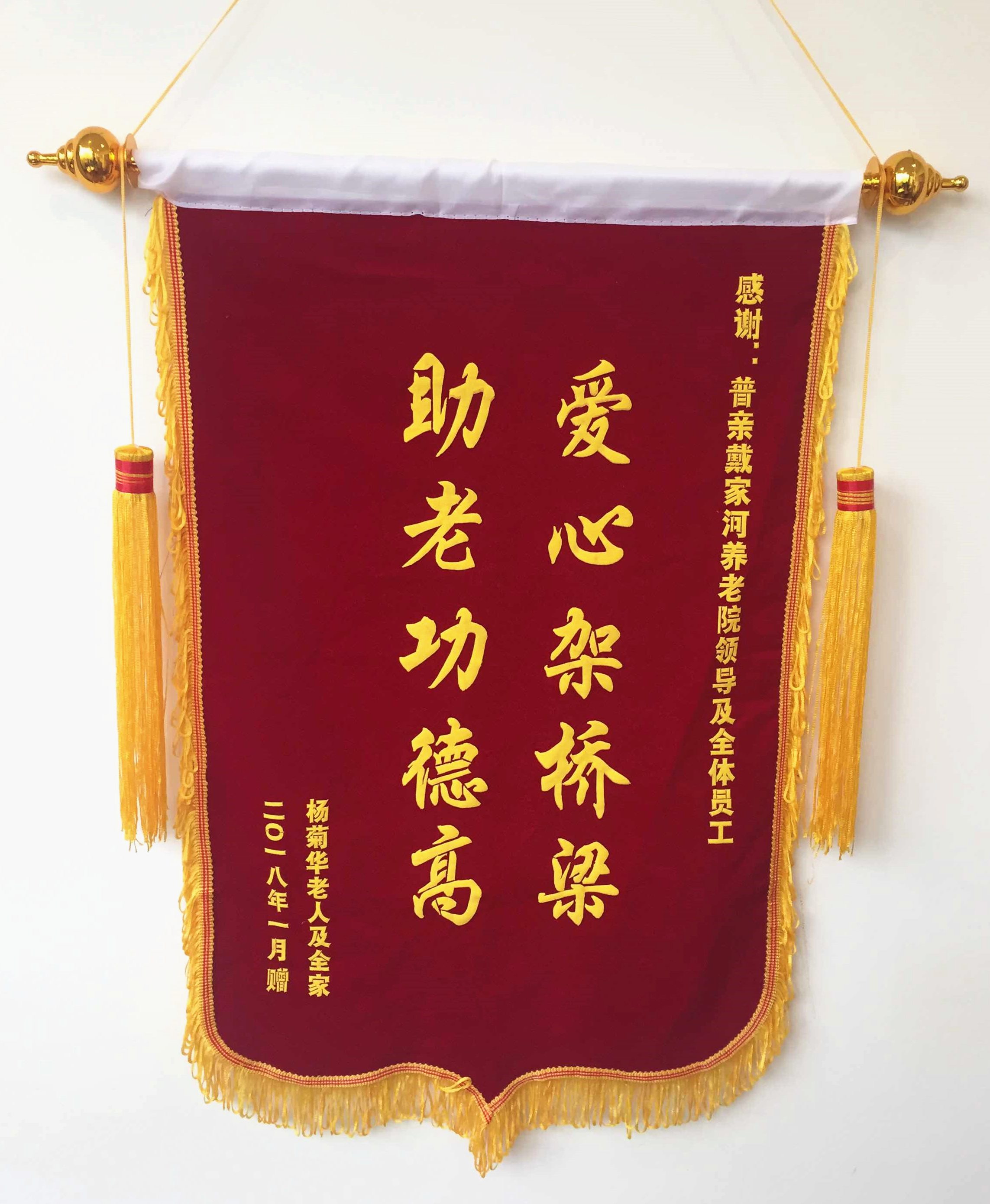 普親老年養護中心戴家河機構楊菊華家屬贈“愛心架橋梁 助老功德高”錦旗!