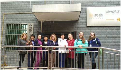 美國南康涅狄格州立大學護理學院教授Antoinette Towle與湘雅護理學院部分師生到訪普親先鋒社區老年養護中心進行參觀交流。